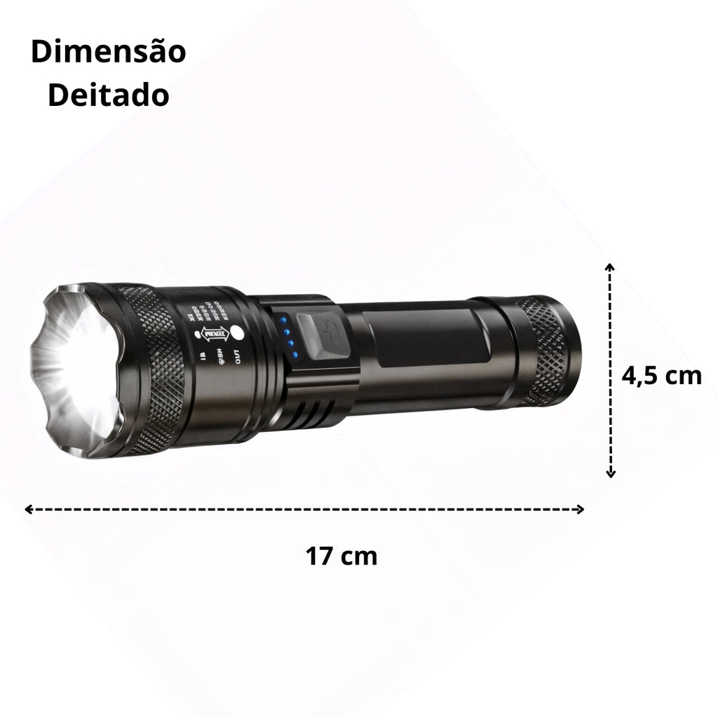 Lanterna Recarregável USB-C Tática T9, 1200 Lumens e Zoom Ajustável - LAN-7059